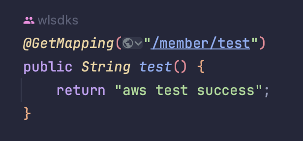 - 잠시 확인할 것은 나는 SpringBoot의 API로 "/member/test"에 요청을 보내면 "aws test success"를 return하도록 했다.
