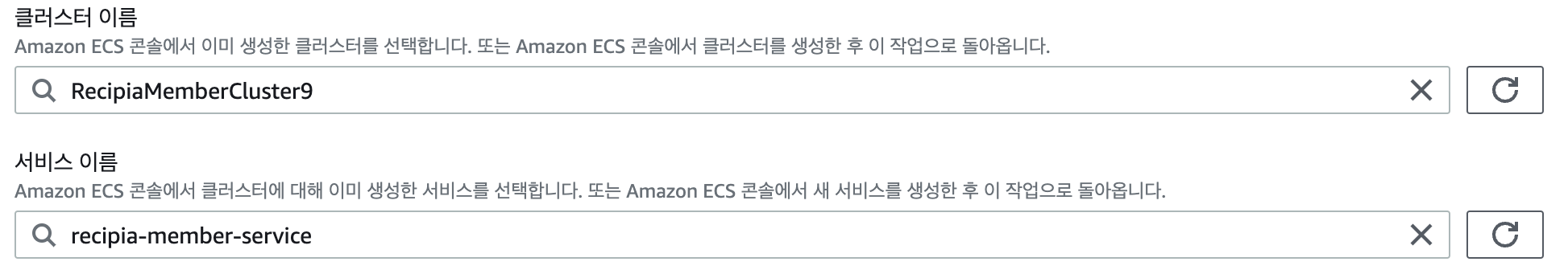 - 기존에 존재하던 ECS서비스는 삭제하고 새롭게 서비스를 만들었다. 기존 서비스 설정은 그대로 따라가고 "패밀리"에만 방금 만든 "태스크 정의"를 선택해 줬다.