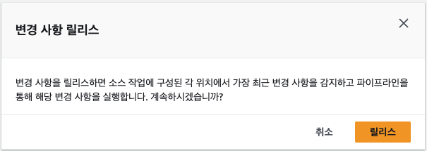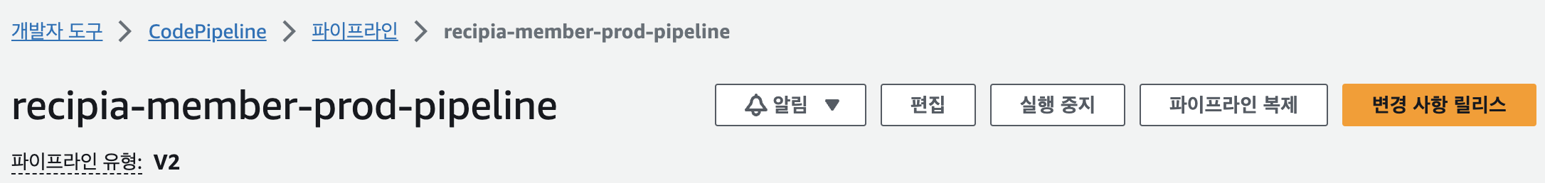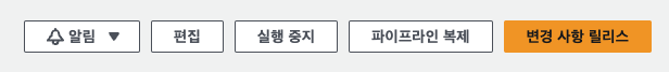 - 이후 다시 Codepipe를 실행했다. 우측 상단에 있는 “변경 사항 릴리스”를 클릭한다.
