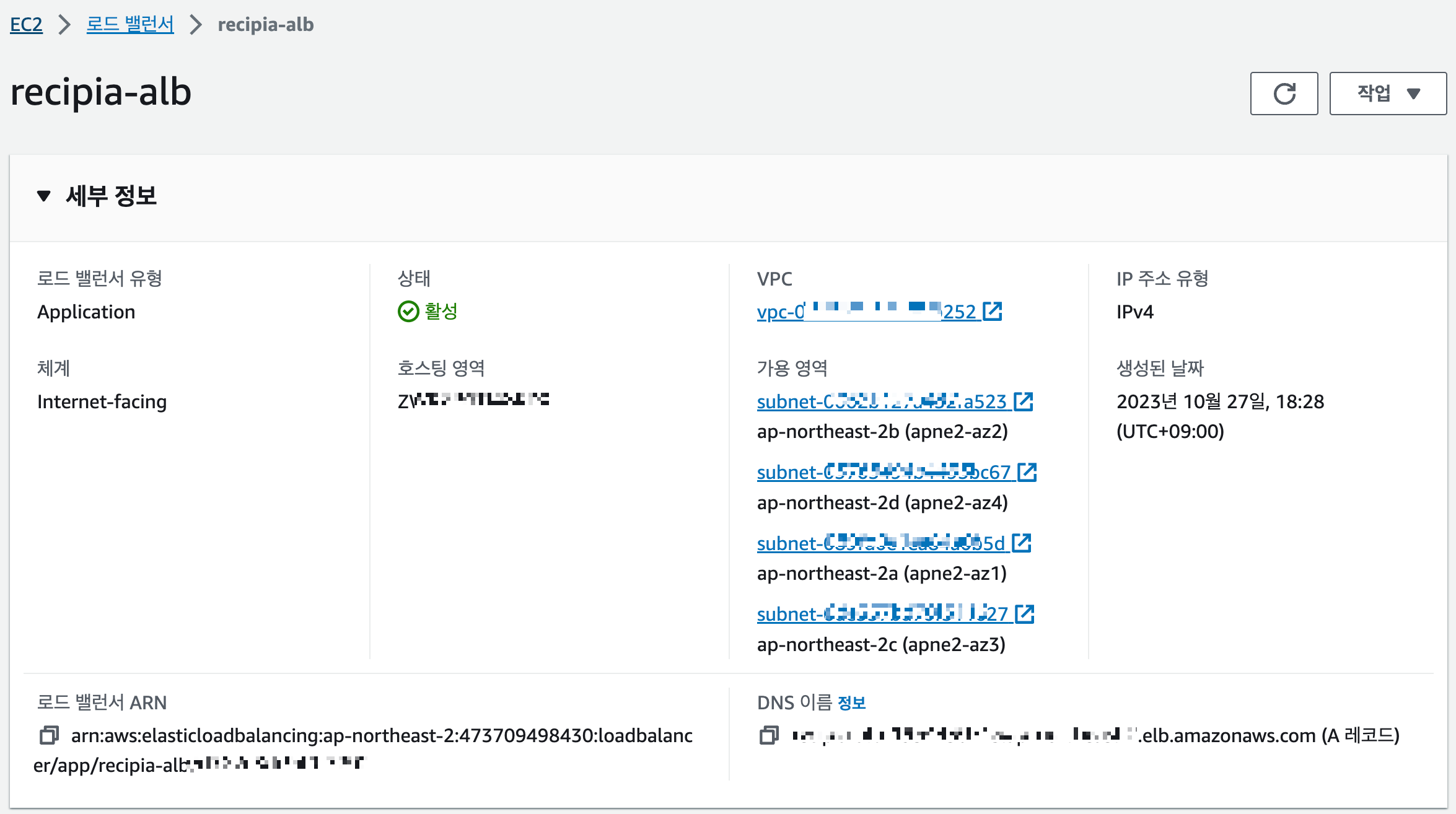 - 로드 밸런서의 "세부 정보"가 나올것이다.