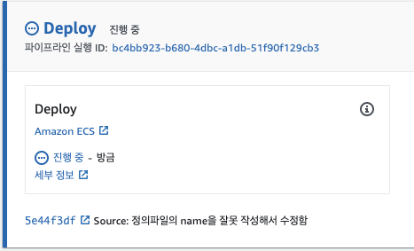 - 다시 Codepipeline을 실행했다. 그리고 배포에 성공했다.
