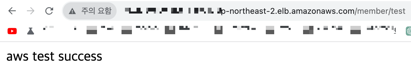 - 잠시 확인할 것은 나는 SpringBoot의 API로 "/member/test"에 요청을 보내면 "aws test success"를 return하도록 했다.