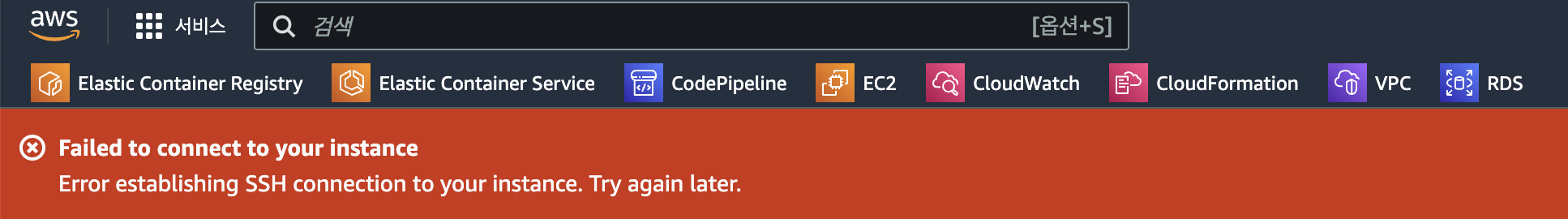 - ECS를 사용하다 EC2에 잠시 접속할 일이 생겨서 인스턴스 요약에 들어가서 "연결" 버튼으로 linux에 접속했는데 오류가 발생했다.