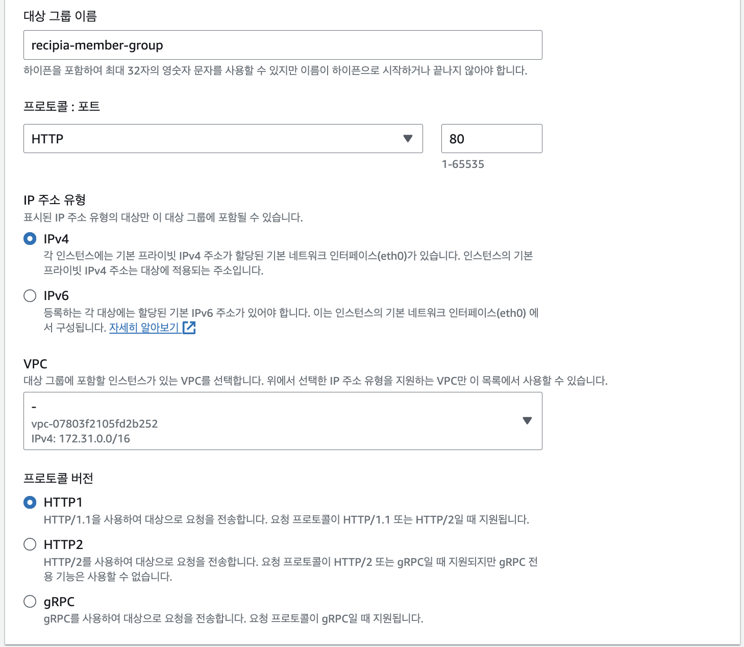 2-2. 대상 그룹 생성에 들어가서 “기본 구성”을 작성