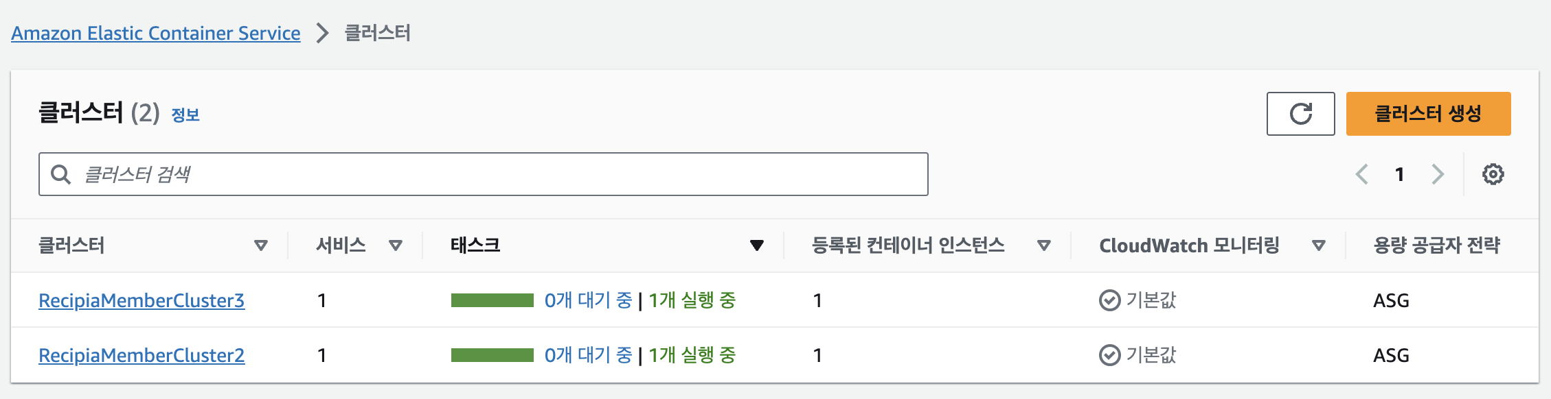 - EC2CapacityProvider가 잘 연결된 것을 확인할 수 있다. (AutoScailingGroup의 용량 공급자(EC2)가 연결된 것이다.)