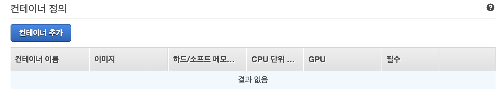 - 컨테이너 정의 아래에 있는 파란색 "컨테이너 추가" 버튼을 클릭한다.