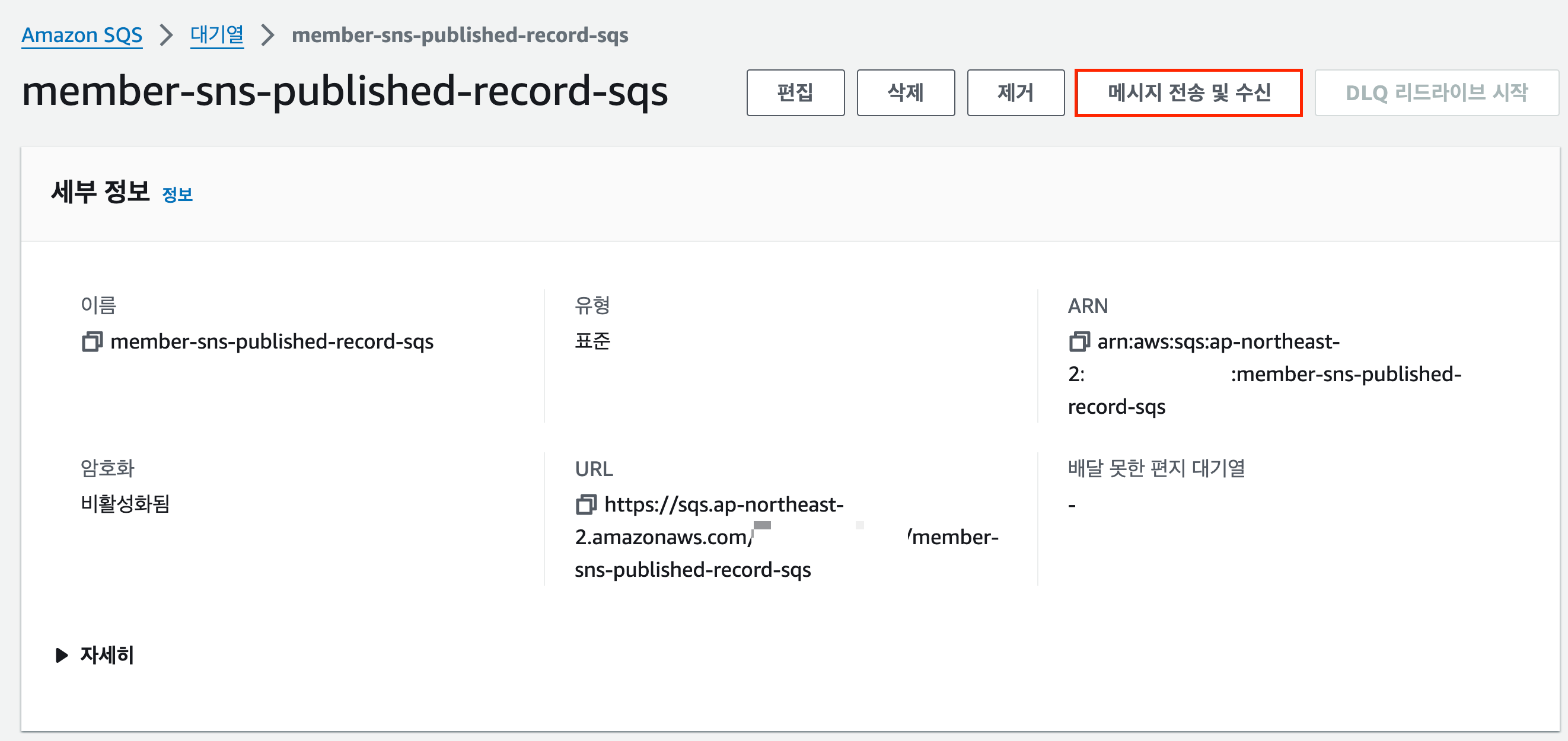 - SQS의 이름을 클릭했다면 아래와 같은 페이지로 이동할 것이다.