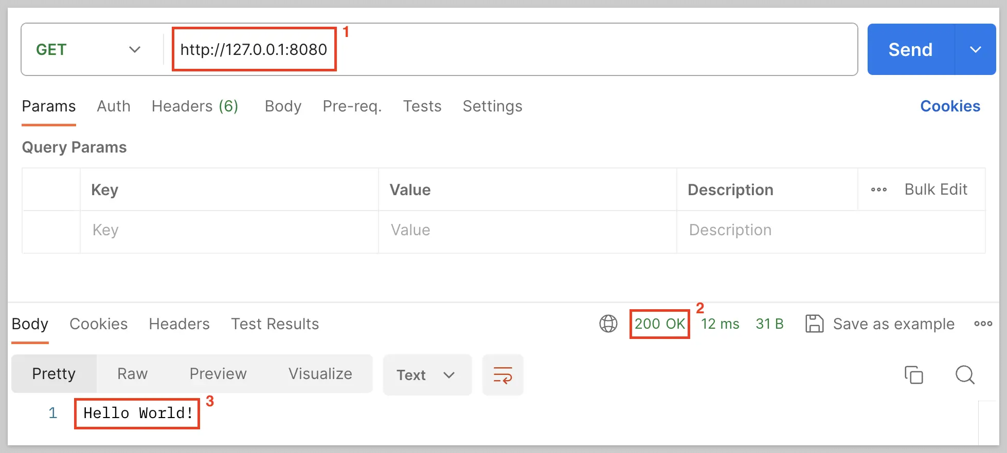 - 200 Ok가 나오면서 "Hello World!"라는 응답을 받은 것을 확인할 수 있다.