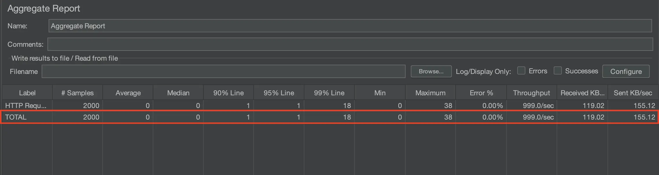 | 처리량 | 초당 약 997.51개의 요청 | 초당 약 999.00개의 요청 |