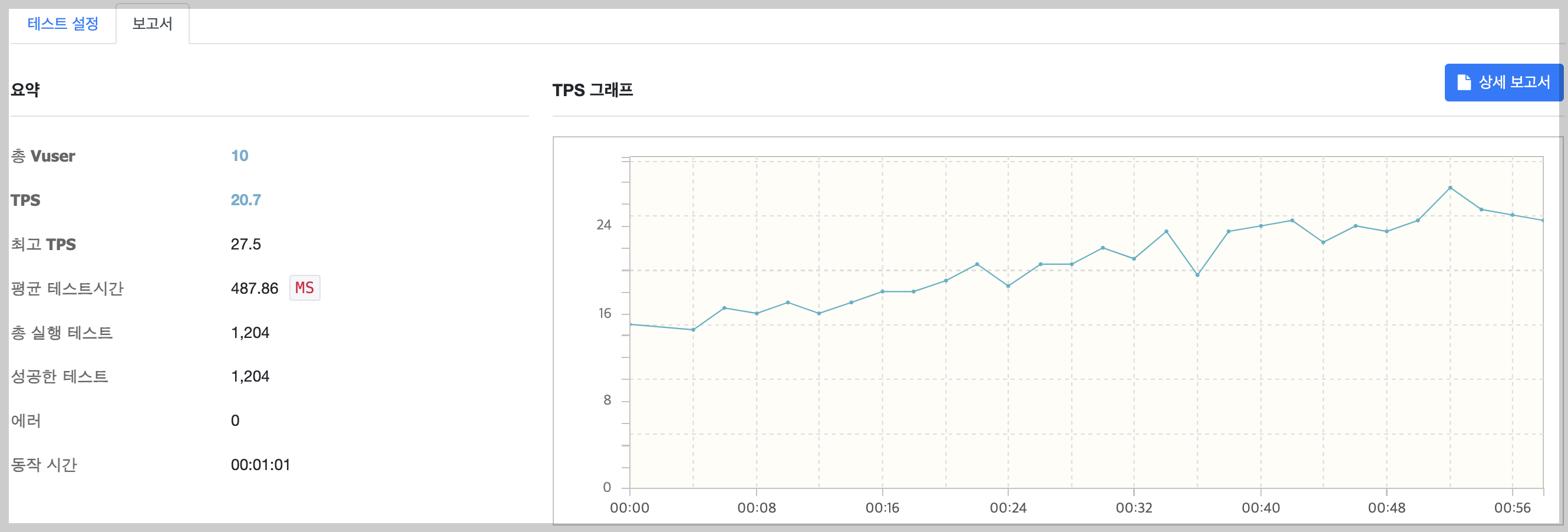 - 결과는 흥미로웠다. 이번 테스트에서도 에러가 1건 발생했다. (에러는 동일하게 500)