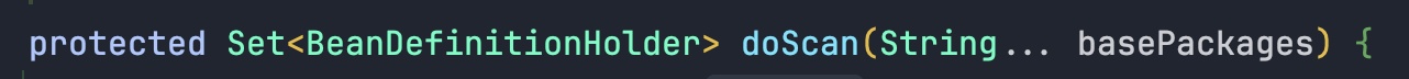 - scan메서드가 내부에서 호출한 doScan 메서드는 실제로 패키지를 스캔하고, 조건에 맞는 컴포넌트를 찾아서 BeanDefinition으로 변환하는 역할을 한다. 이 메서드는 BeanDefinitionHolder의 집합을 반환하고, 각 BeanDefinition에 필요한 메타데이터를 설정한다.