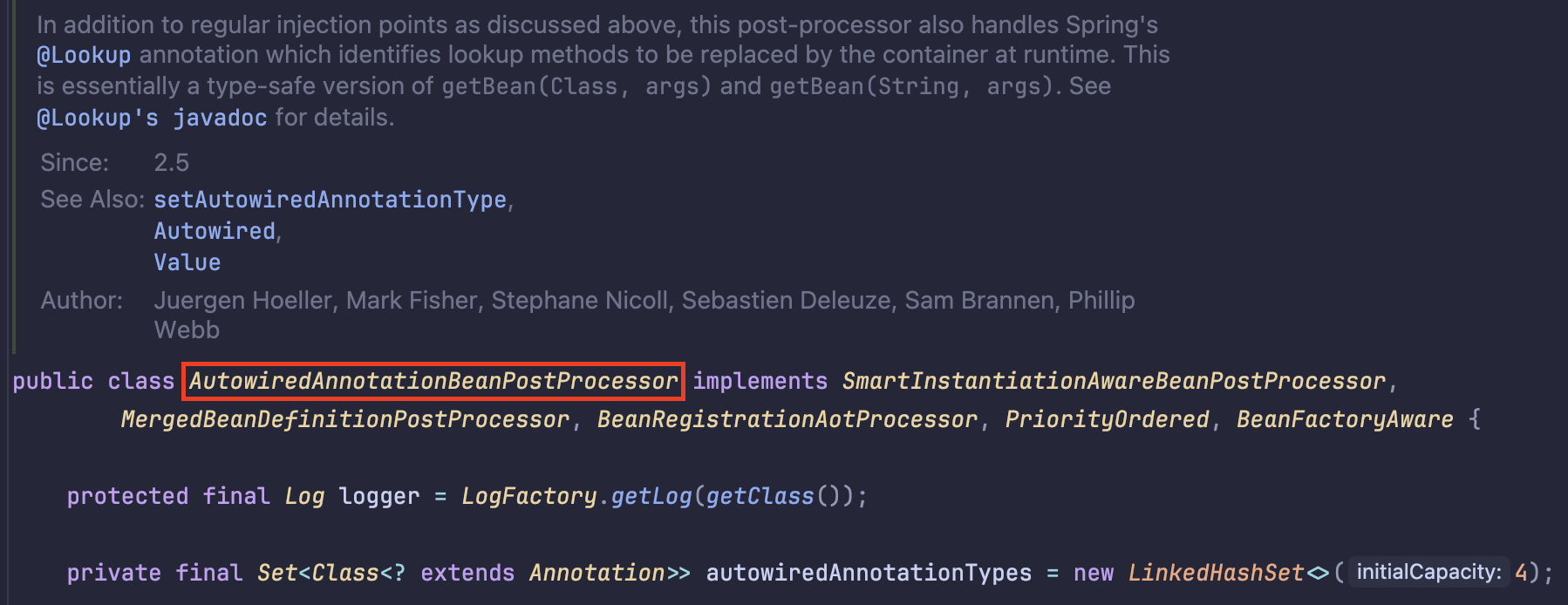 AutowiredAnnotationBeanPostProcessor 클래스는 아래와 같다.