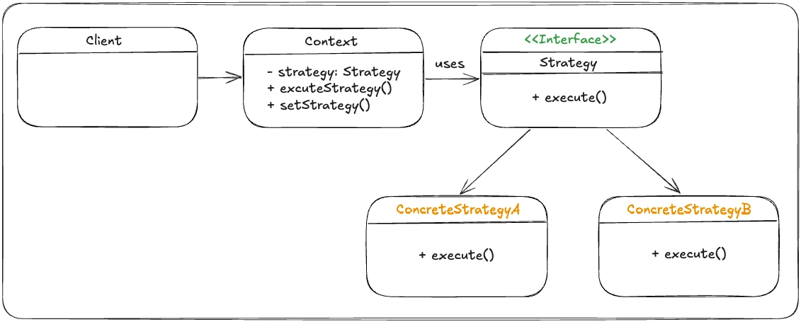 - 여러 if-else나 switch문으로 알고리즘을 분기하기보다는 전략 클래스로 분리하여 코드 복잡도를 낮출 수 있습니다.